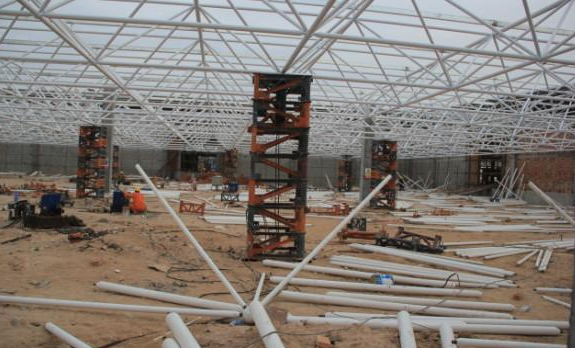 5)总体晋职法:此步履多使用在周边支护以及有多点支护的网架结构,可采取平板升降机、液压千斤顶等小型机具作业汉中施工;